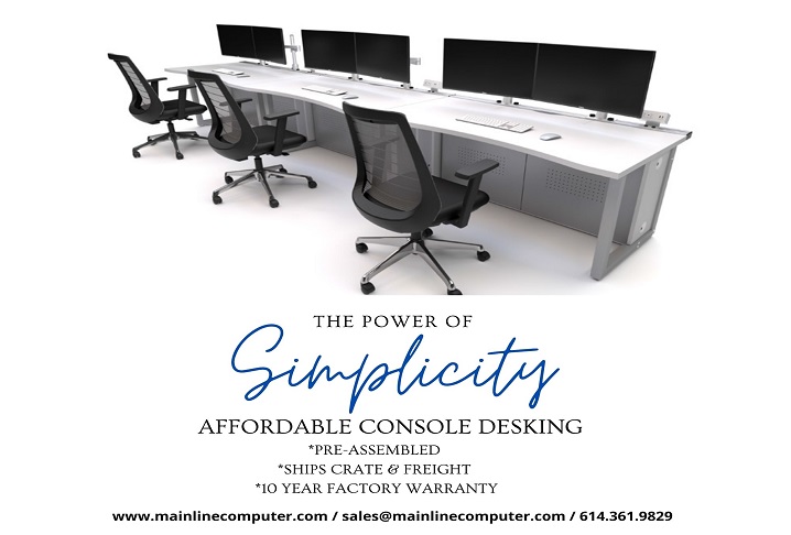Mainline Computer's premier Command Console Product Lines, have been installed in the world 's most recognized financial, insurance, government, healthcare, manufacturing, internet and energy organizations. Our range of console furniture helps turn your operation into an efficient, clutter-free work environment that portrays a prestigious and professional image.